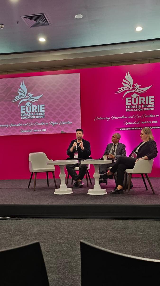 Dr. Öğr. Üyesi Hakan Ergin, 7–9 Nisan 2026 tarihleri arasında İstanbul’da düzenlenen Avrasya Yükseköğretim Zirvesi’nde bir panelist olarak yer aldı. Bölgenin en büyük uluslararası yükseköğretim zirvesi olan etkinlikte Dr. Ergin, mikro yeterliliklerin nasıl yeni bir uluslararasılaşma formu olarak ortaya çıktığını inceleyen devam eden çalışmasını tanıttı. Dr. Ergin’e, Almanya merkezli Uluslararası İşletme Yönetimi Akreditasyonu Vakfı’nda (FIBAA) Uluslararası Akreditasyon Prosedürleri Bölüm Müdürü olan Yuliia Bleshmudt ile Türkiye merkezli Mikro Yeterlilikler Derneği’nden Dr. Ejder Yelken eşlik etti. Panelin moderatörlüğünü ise Hollanda merkezli Yükseköğretimde Kalite Güvencesi Kuruluşları Uluslararası Ağı Direktörü Prof. Dr. Olgun Çiçek üstlendi.