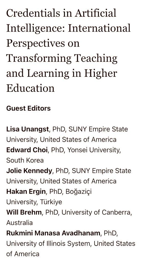 Dr. Öğretim Üyesi Hakan Ergin ve meslektaşları, International Journal of Educational Technology in Higher Education’in "Yapay Zeka Alanında Yeterlilikler: Yükseköğretimde Öğretim ve Öğrenmeyi Dönüştürmeye İlişkin Uluslararası Perspektifler" başlıklı özel sayısında yayınlanacak makaleleri kabul etmektedir. Özet gönderim son tarihi 15 Ağustos 2025'tir. Daha fazla bilgi için: https://www.springeropen.com/collections/AIHE